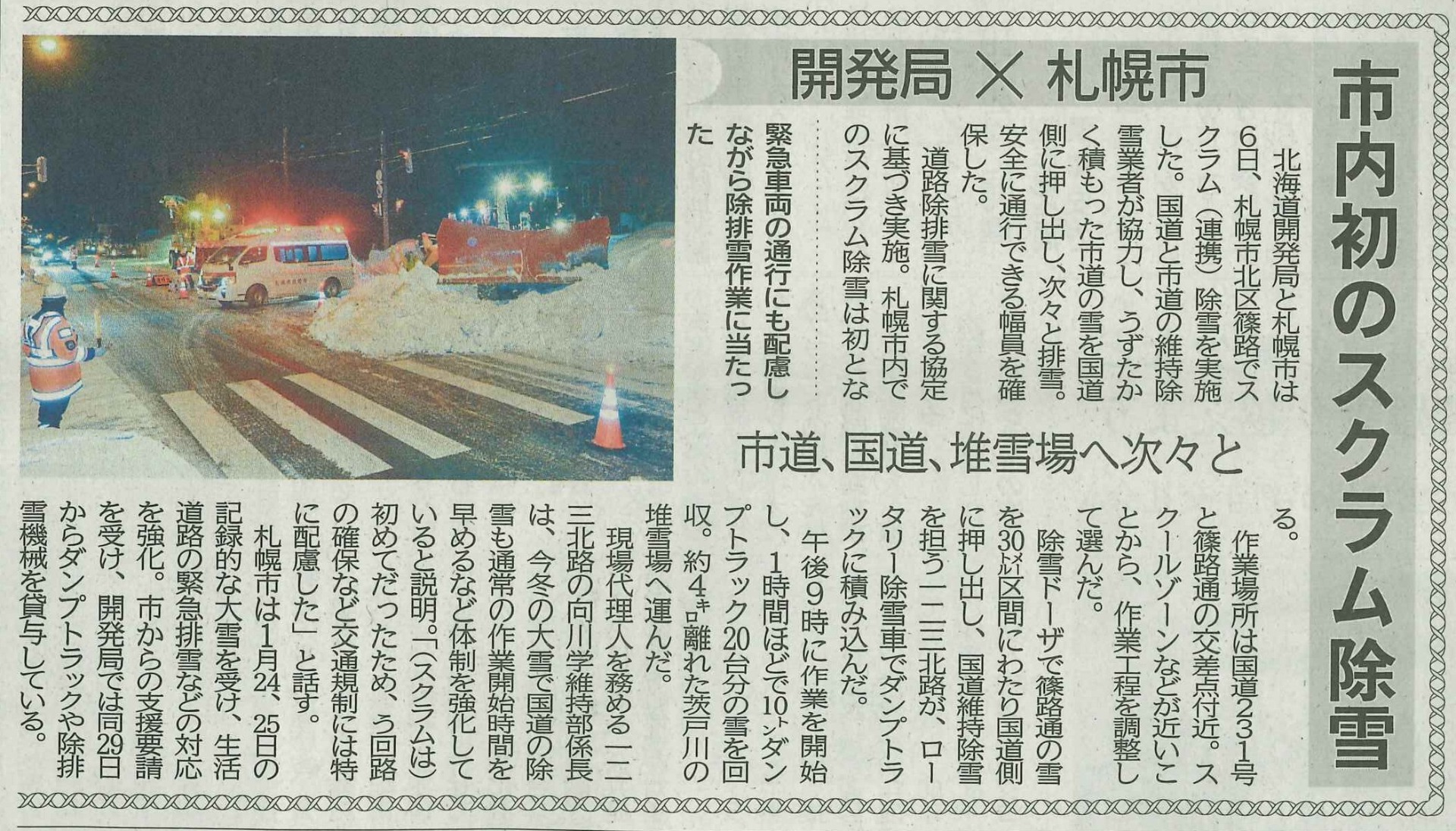 開発局×札幌市 スクラム除雪に関する記事 | 北海道建設新聞(2026.2.10)【記事を見る】 |