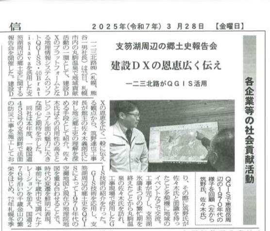 支笏湖周辺の郷土史報告会〜建設DXの恩恵広く伝え〜 | 北海道通信(2025.3.28)【記事を見る】 |